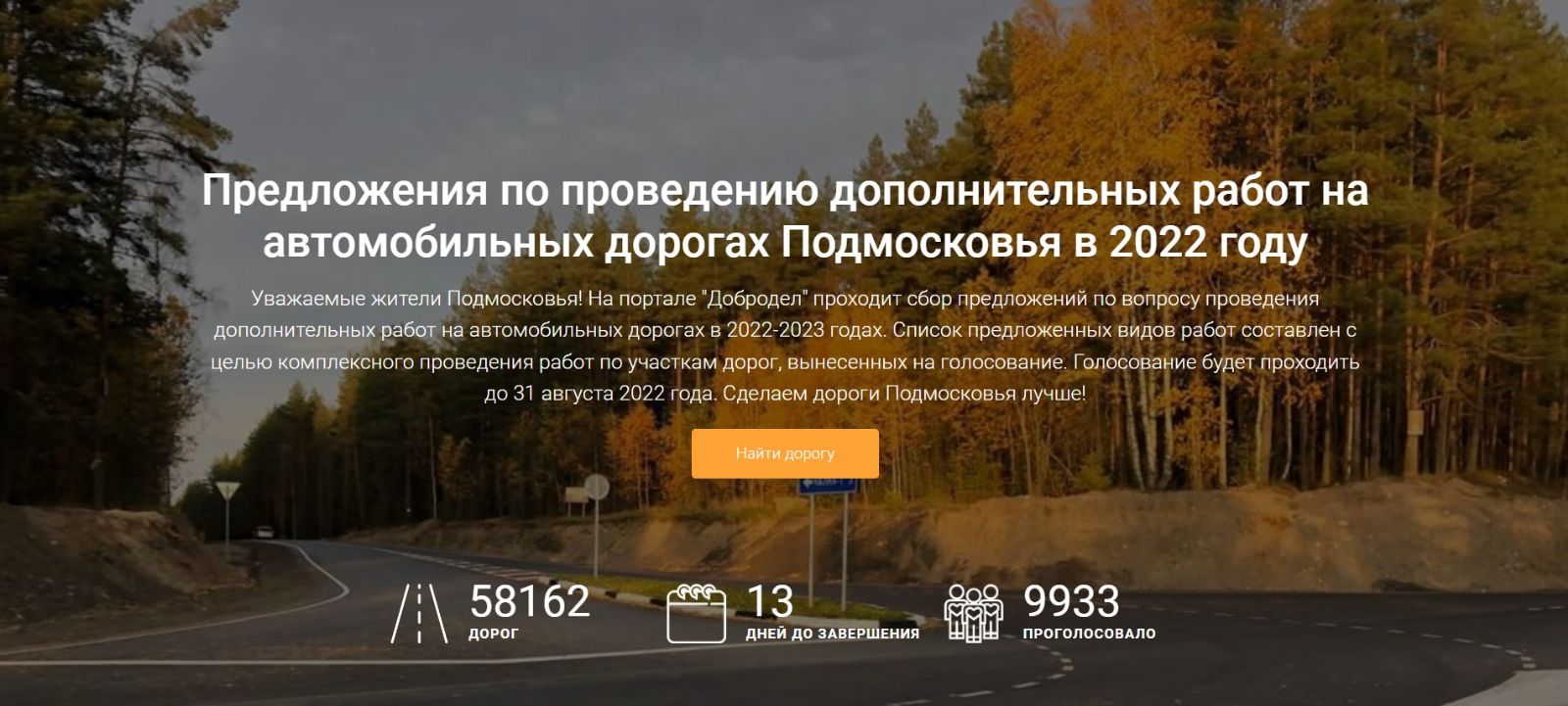 На портале «Добродел» проходит сбор предложений по вопросу проведения дополнительных работ на автомобильных дорогах в 2022-2023 годах