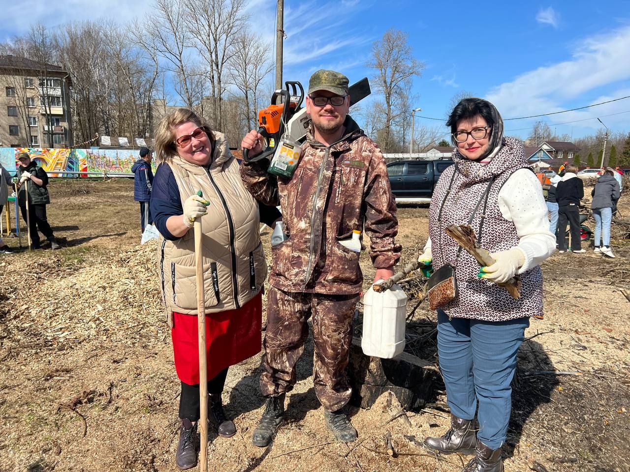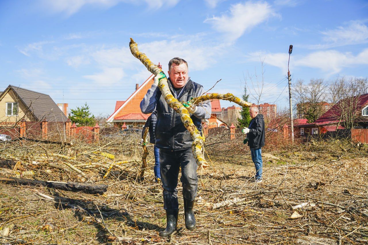Многие пришли на уборку семьями. Участники субботника разделились на бригады, каждая приводила в порядок отдельный квадрат территории. Также уборка прошла у здания поликлиники, детского сада и на детской площадке. Пока одни собирали бросовый мусор, другие превращали сухостойные деревья и кустарники в опилки и работали кисточками с краской. Субботник продлился около пяти часов. После работы на полевой кухне всех участников угостили гречневой кашей, горячим чаем, пирогами и бутербродами. Ранее губернатор Андрей Воробьев призвал задействовать все ресурсы для весенней уборки дорог и дворов.