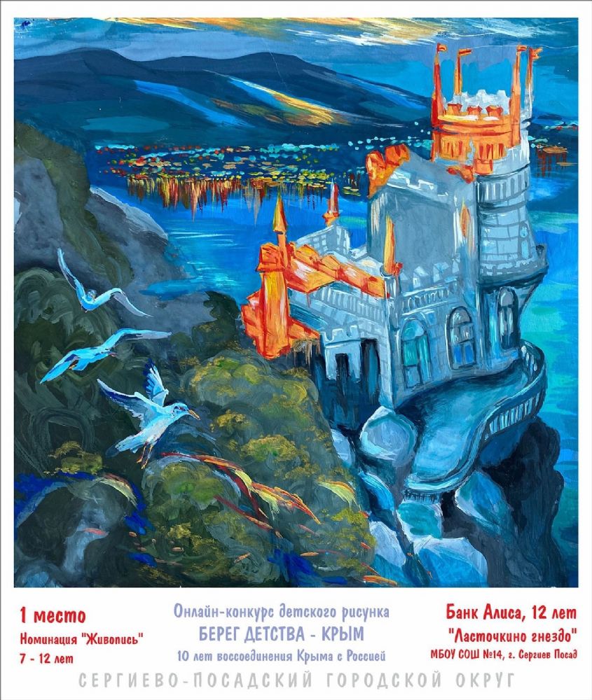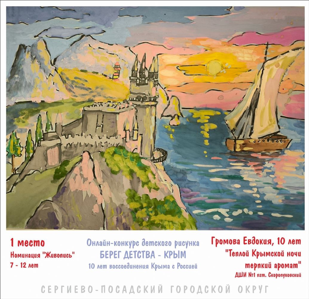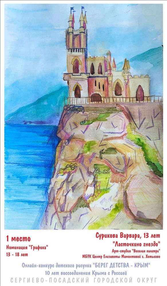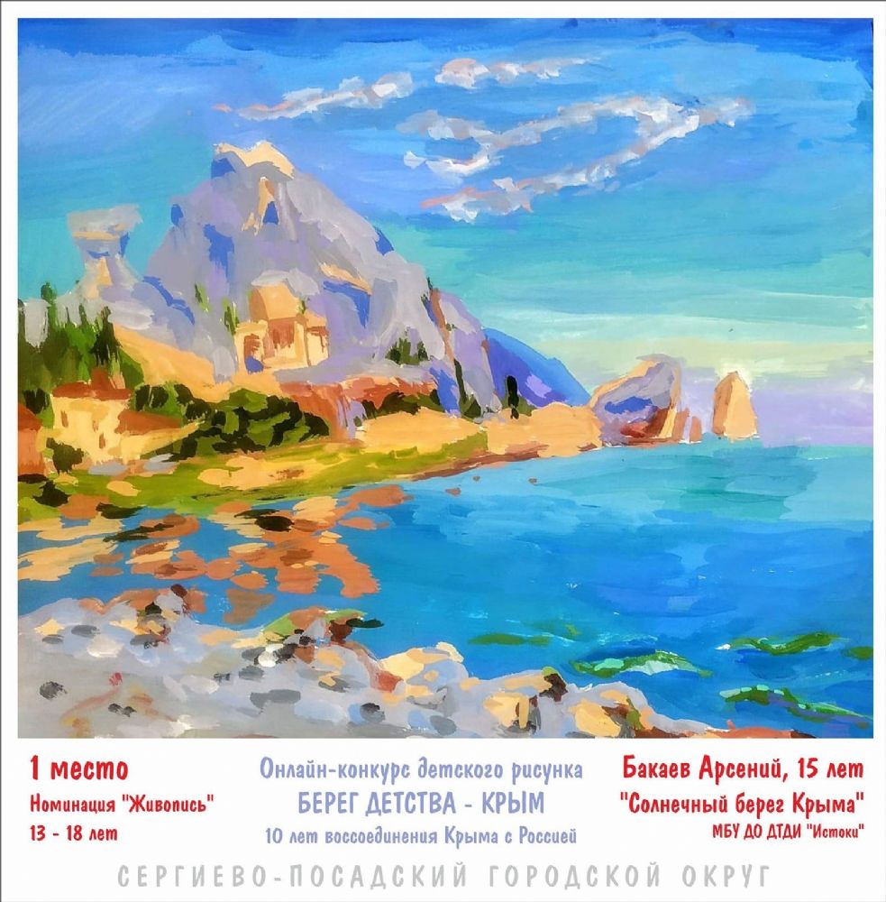 В течение почти месяца юные художники от 4 до 18 лет присылали свои работы на конкурс, приуроченный к 10-летию возвращения Крыма в состав России. Алиса Банк, Арсений Бакаев, Варвара Сурикова, Матвей Вавакин и ещё 28 участников лучше всех передали живописные особенности и неповторимую притягательность полуострова.