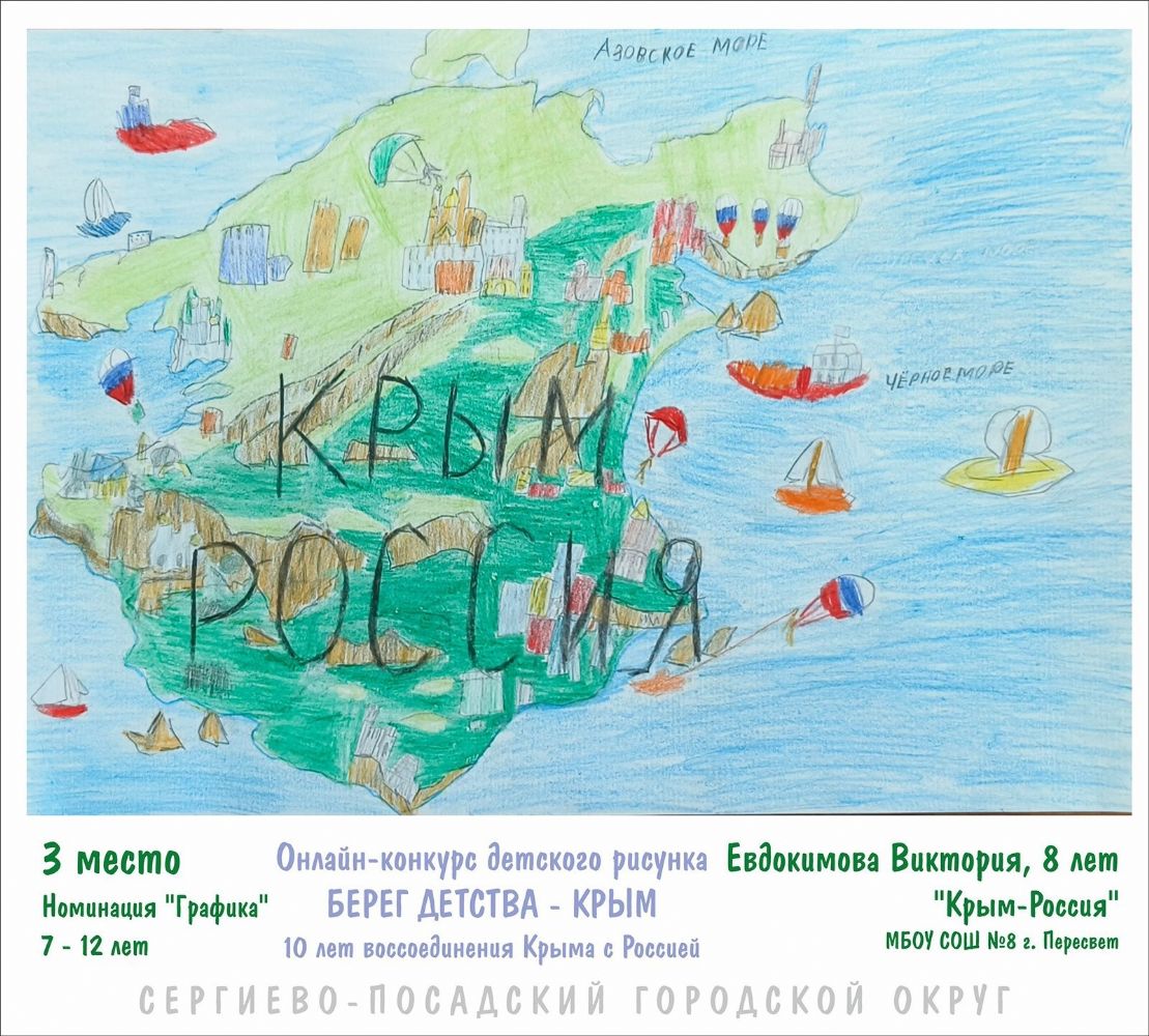 С 19 февраля по 15 марта в Сергиево-Посадском городском округе проходил конкурс детского рисунка "Берег детства - Крым". Его организаторами выступили Совет депутатов и Общественная палата при поддержке администрации округа.