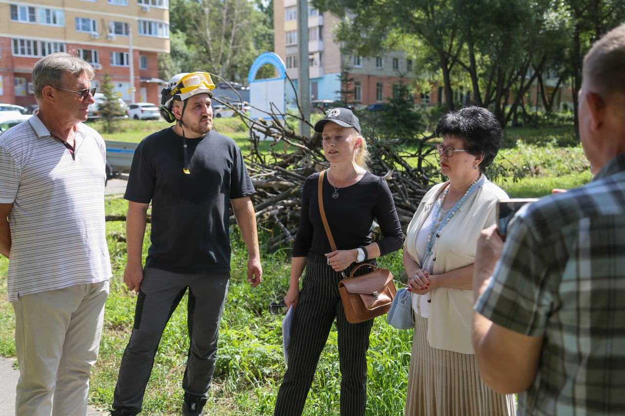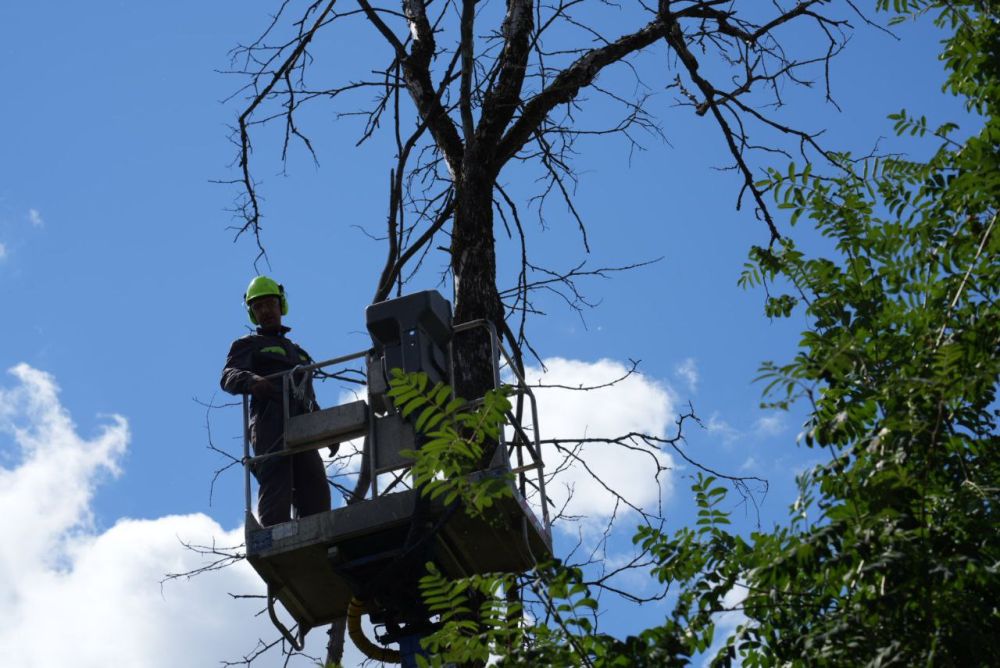 На Рабочем посёлке стартовала комплексная опиловка деревьев. Первой улицей, зелёные насаждения которой будут приведены в порядок, стала улица Краснофлотская. Бригада опиловщиков удаляет погибшие деревья — так называемый сухостой. Он не только