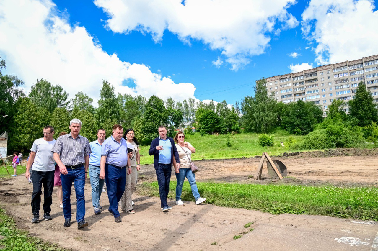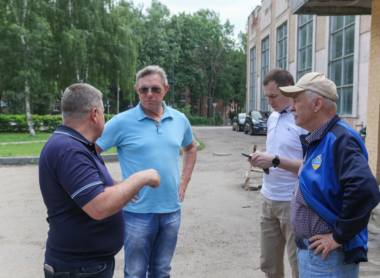 Продолжаются работы на стадионе микрорайона Ферма. Прямо сейчас здесь строится новое футбольное поле, скоро появится лестница с пандусом, ведущая вниз от многоэтажек. Глава Дмитрий Акулов вместе с профильными заместителями и депутатом окружного Совета